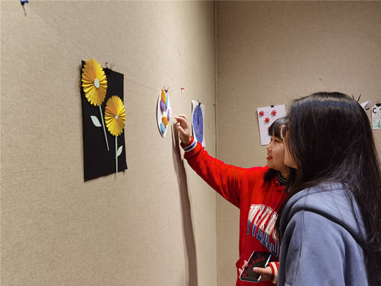 普通的纸张,在灵活的手指下,一按、一折、一压,巧妙灵活的变化,成了纷飞的蝶,成了绚丽的花,成了童趣的动物。组织人员提前来到活动场地布置作品,检查场地安全,而后活动人员陆续到达了展厅,在组织人员的引领下进行纸质签到,同学们静静欣赏着悬挂的折纸作品,感慨万千,钦佩不已。展厅似乎成了纸的世界,红色的“玫瑰”、靓丽的“向日葵”、秀丽的“樱花”、纷飞的“蝶”、展翅的“鹤”,在无声之中向同学们展示中华民族美轮美奂的折纸艺术,同学们两两结伴而行,有的同学向同伴介绍着自己的作品,交流自己的心得体会,他们深深沉浸在折纸这一优秀传统文化的魅力之中。美好的时光总是短暂,活动接近末尾,组织人员开始组织人员签到,拍照记录,并组织人员离开。