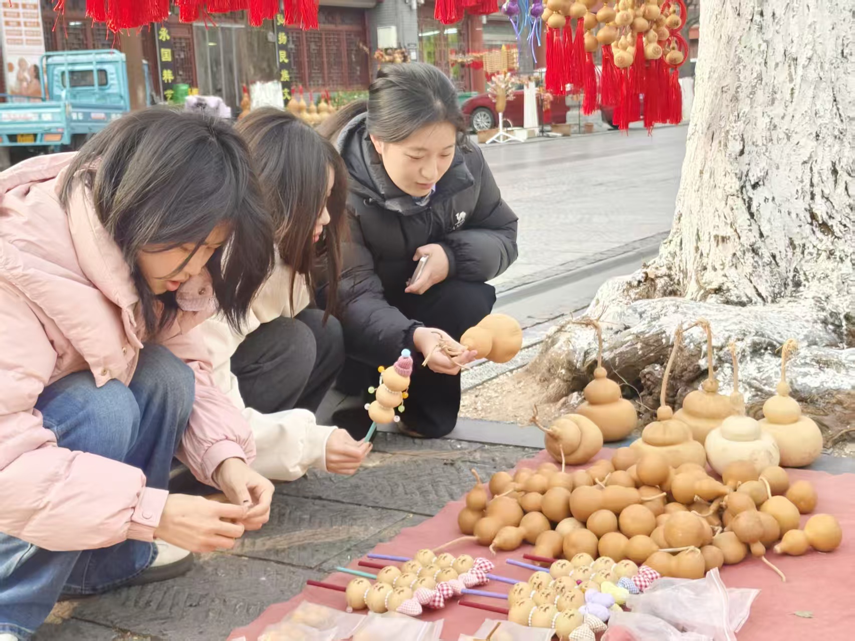 活动期间,团队成员探访了中华葫芦艺术博物馆,学习东昌葫芦的历史沿革;随后前往非遗门店,深入葫芦生产与传承一线,实地观察葫芦雕刻、范制、烙画等传统技艺的完整流程;团队成员与非遗传承人展开深度访谈,记录下濒临失传的手工技艺细节;还面向路人开展问卷调查,了解公众对东昌葫芦非遗的认知度。