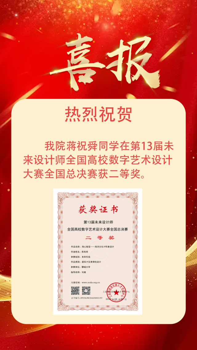 喜报|suncitygroup太阳集团学子荣获第13届未来设计师全国高校数字艺术设计大赛全国总决赛二等奖 作者:赵靓正 来源:suncitygroup太阳集团 发布时间:2025-11-24 阅读次数: